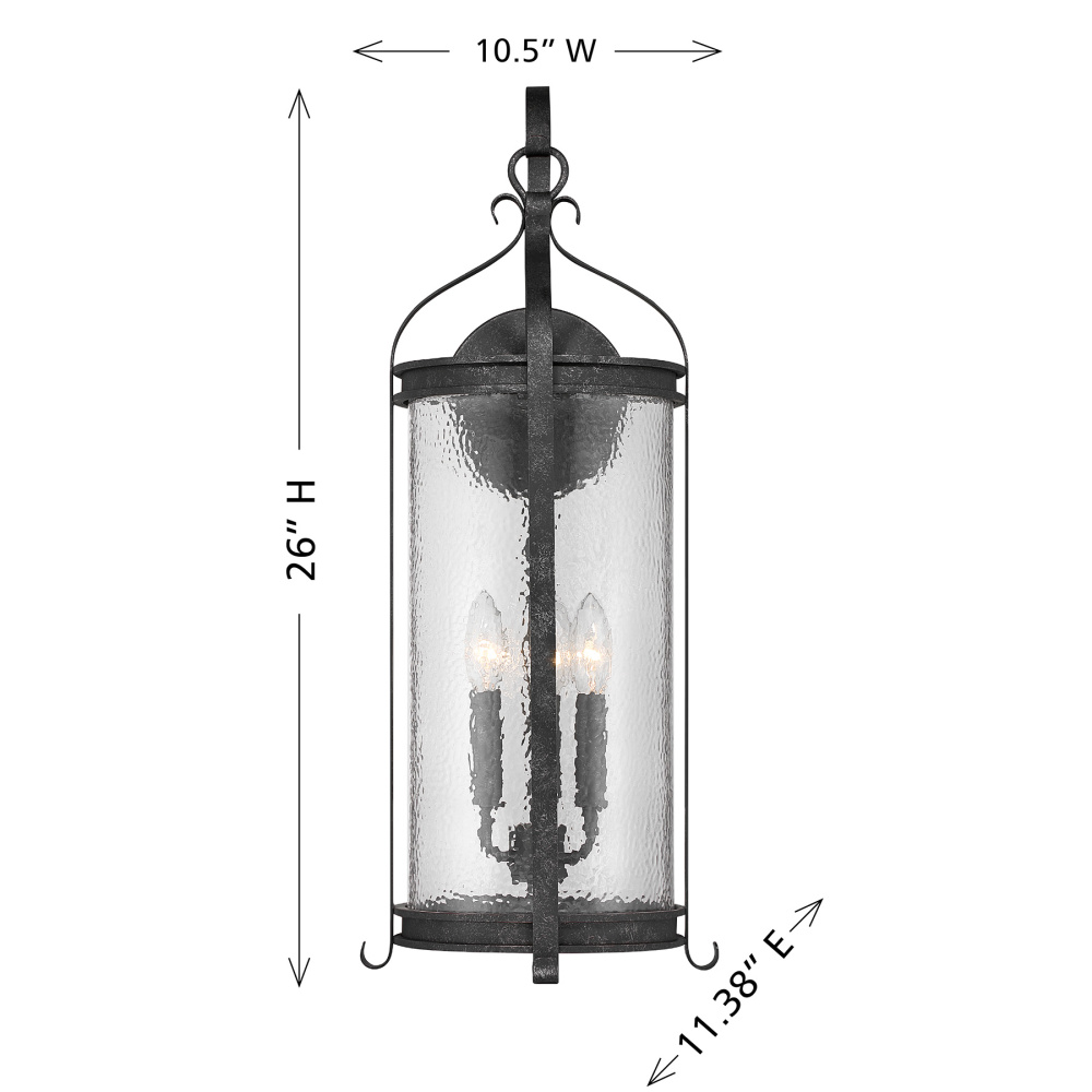 The Savoy House Preston 3-light outdoor wall sconce brings beautiful dimension to traditional exteriors. Its tall, graceful frame showcases clear pebbled glass that adds softly diffused sparkle, day or night. A shepherd’s hook-inspired detail enhances the classic character while the Iron Oxide finish provides a weathered, heritage-rich feel. Preston is 26" in height, 10.5" in width, and extends 11.38" from the wall. Uses three candelabra size bulbs of up to 60 watts each (bulbs not included). Wet area rated.