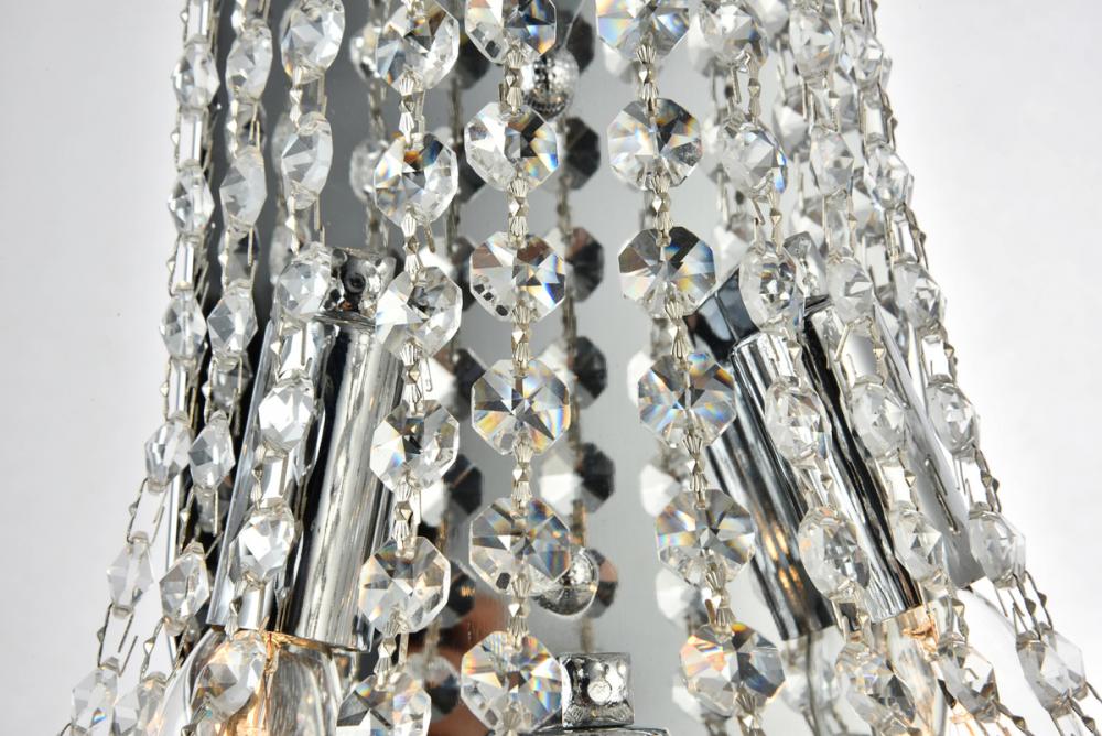 Primo wall sconces come in finishes of brilliant chrome or gold, which are refracted in the clear crystals