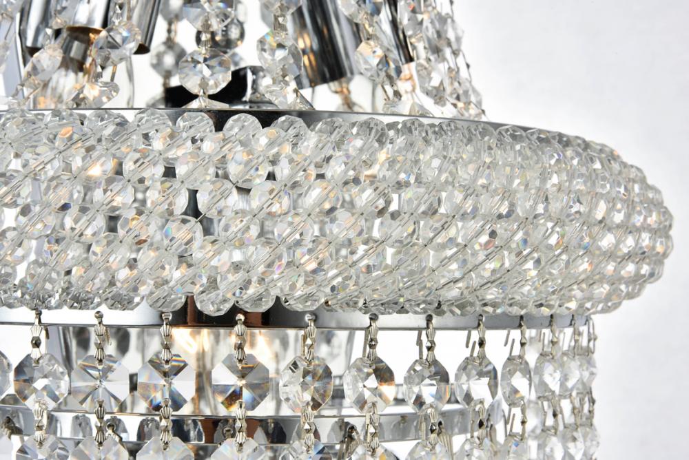 "Primo" means "first" in Italian, and the Primo wall sconces live up to their name as the top choice in classic, dramatic lighting. The gentle bell-shaped design adds graceful elegance to brighten any area of your home. A small ring on top, encrusted with crystals, holds strands of crystal octagons that flow outward to the larger bottom ring, laden with more crystals. Below that, this shimmering fixture culminates in descending layers of crystal octagons, balls, or drops, which come together with a Single ball at the bottom.
