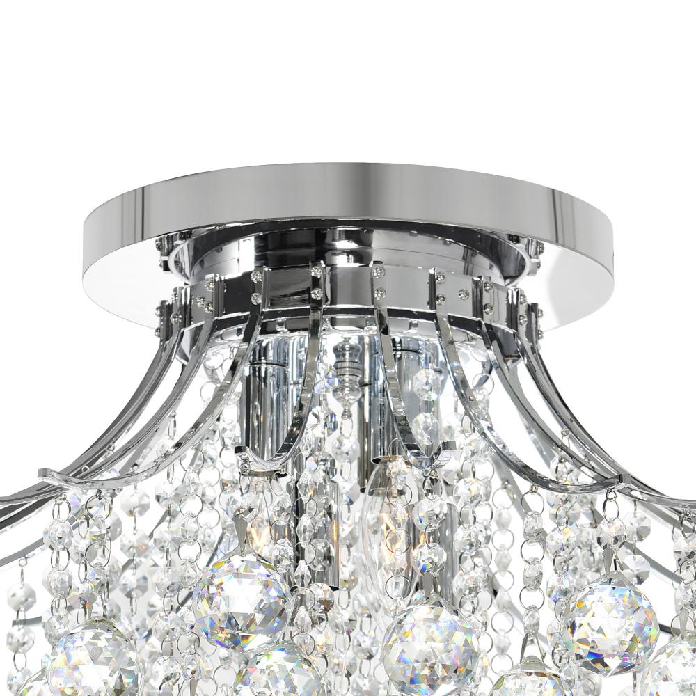 The Princess 6-Light Flush Mount is a 20-inch crystal ceiling fixture designed to bring both elegance and function to smaller spaces. Ideal for rooms with low ceilings, this light offers ambient illumination without overwhelming the space. Whether installed in a bedroom, entryway, or mudroom, it enhances the decor while maintaining a compact footprint.