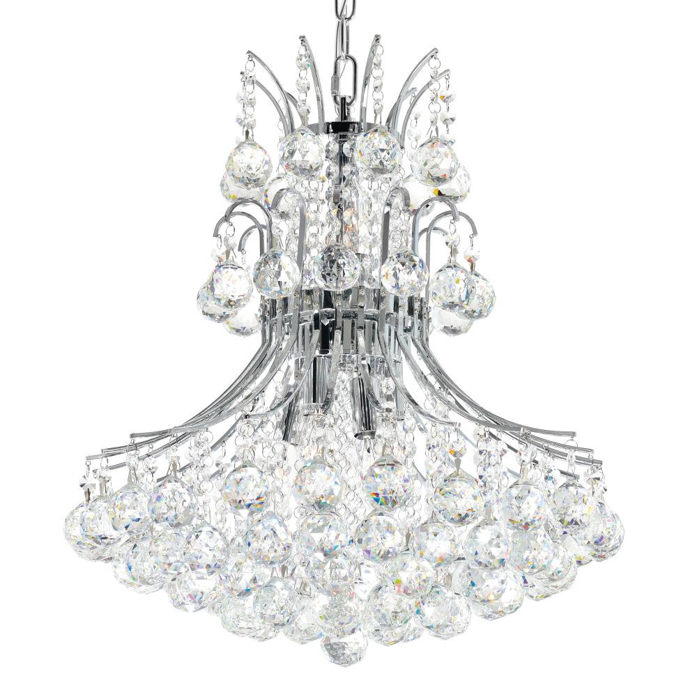 Transform your space with the Princess 8-Light Chandelier a statement piece designed to elevate any room. Measuring 21 inches high and 20 inches wide, this elegant down chandelier features a chrome-finished metal frame in a graceful silhouette, accented by cascading faceted crystal balls. Ideal for adding a touch of luxury to your living room, dining area, or entryway, this fixture brings both brilliance and sophistication to your ceiling.