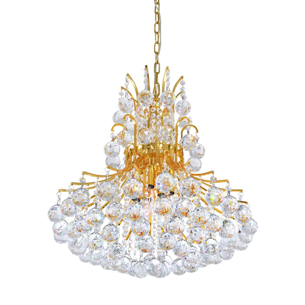 Elevate your space with the Princess 8-Light Gold Chandelier a luxurious lighting fixture that instantly transforms any room. With a height of 21 inches and a width of 20 inches, this down chandelier features a stunning gold-finished metal frame in a graceful silhouette. Dangling faceted crystal balls complete the look, creating a glamorous gleam on your ceiling. Perfect for adding a sophisticated, upscale vibe to living rooms, dining areas, or entryways.