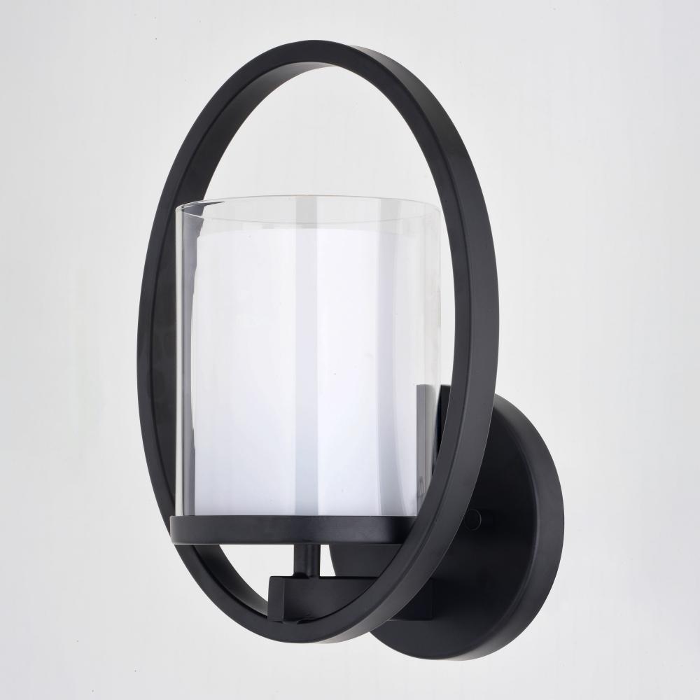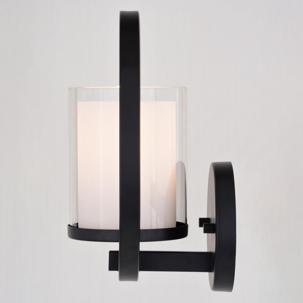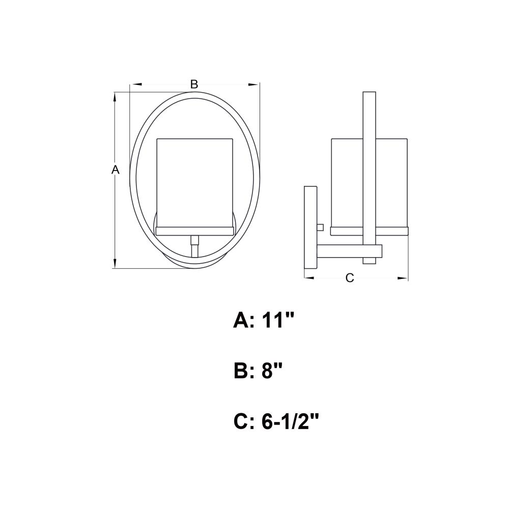 The Princeton 8-in. wall light is a captivating fusion of bold aesthetics with transitional sophistication. Crafted with an open ring frame and nested cylinder shades of clear and white glass, this fixture creates a striking geometric statement that adds a touch of elegance to any space. Whether adorning bathrooms, bedrooms, or hallways, its versatile design exudes modern charm while providing functional illumination. with dimmable functionality (when used with dimmer wall switch - not included) and compatibility with LED bulbs, it offers both ambiance and energy efficiency.