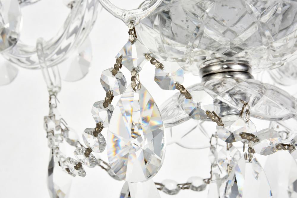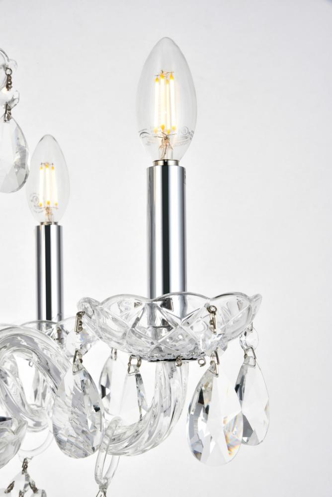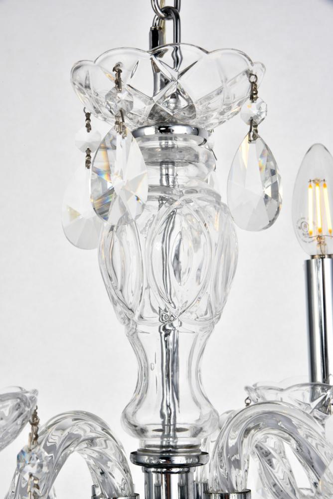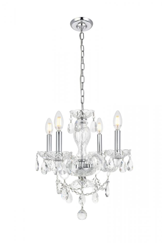 The Elle Collection is an exquisite ceiling light to enhance your traditional décor or any small space that needs a touch of glamour. This chandelier features dazzling Crystal glass accents all around its chrome finished frame and hang chain.