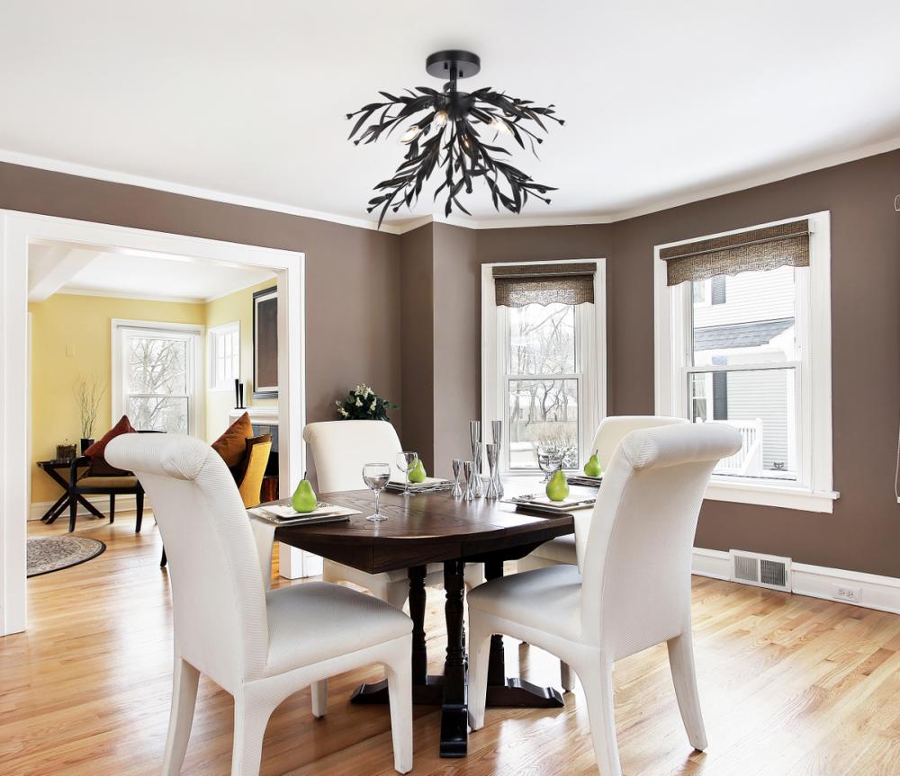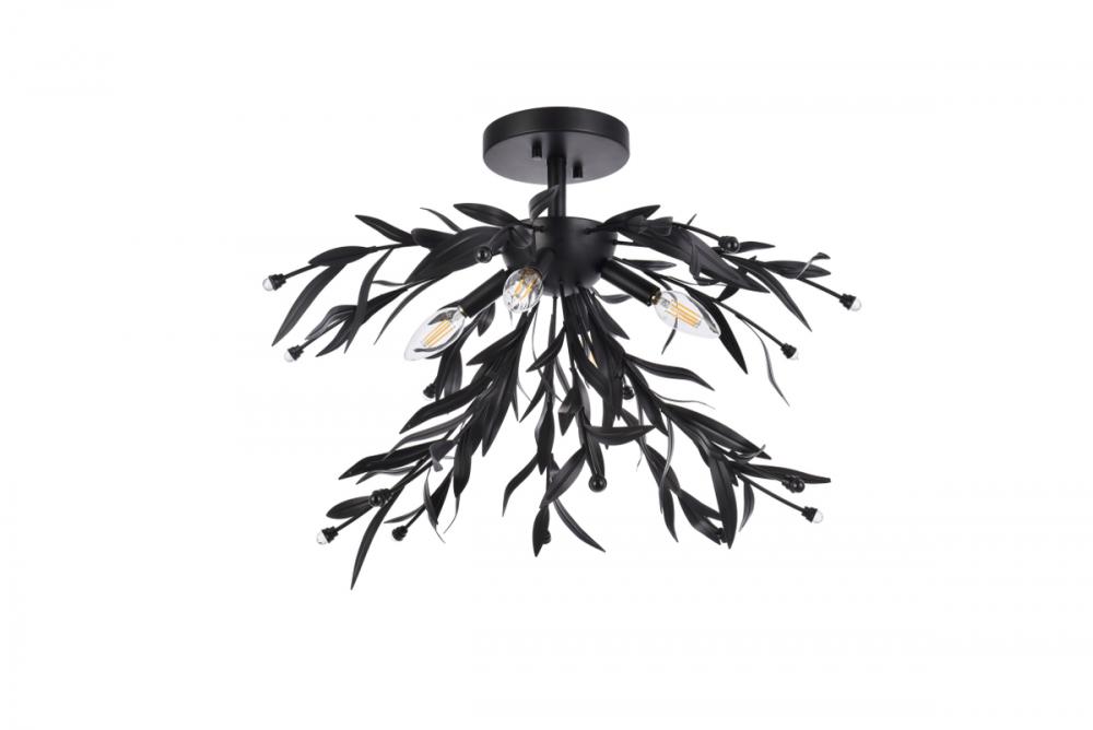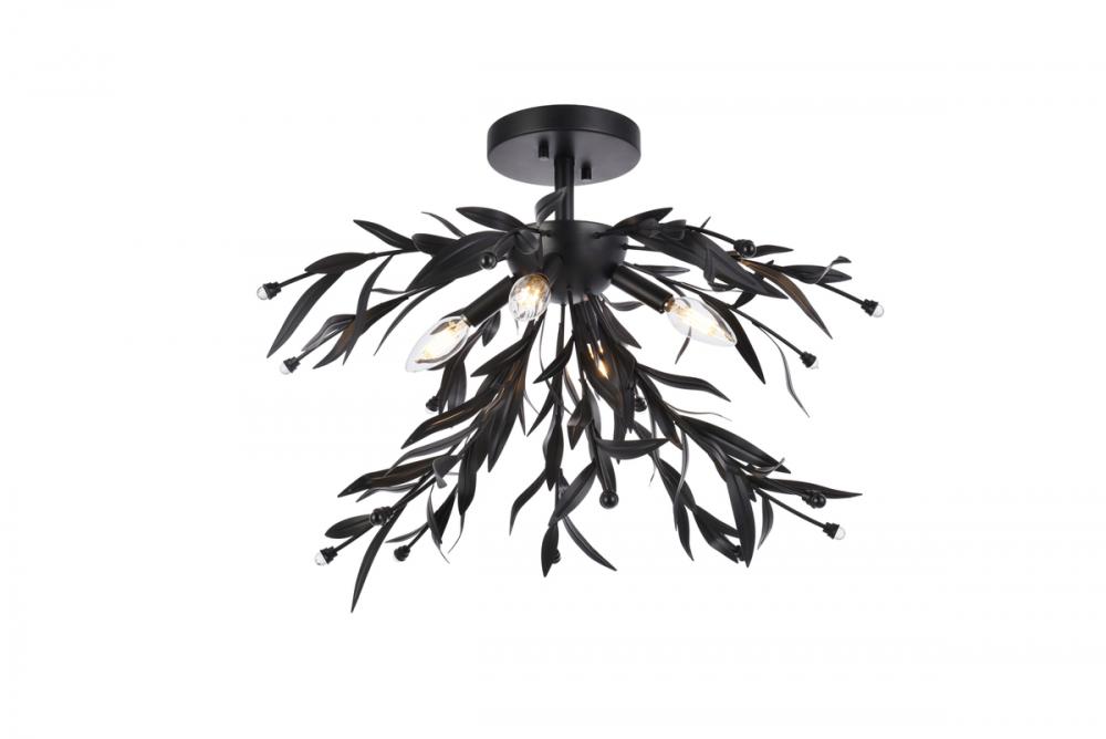 This 4 light semi-flush mount is sure to add a nice focal point in your space. The circular canopy, small downrod, and sockets are made from metal of your choice of finish. It features several leaf branches tipped with clear crystal bead. This fixture takes four 40W bulbs, (not included) that wash your space in a bright glow. It's compatible with a dimmer switch, so you'll always have the right amount of light no matter the time of day.