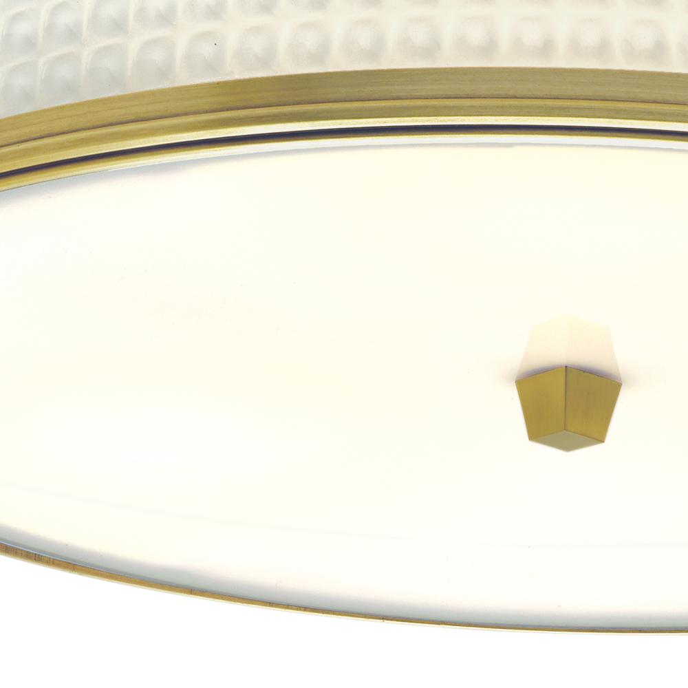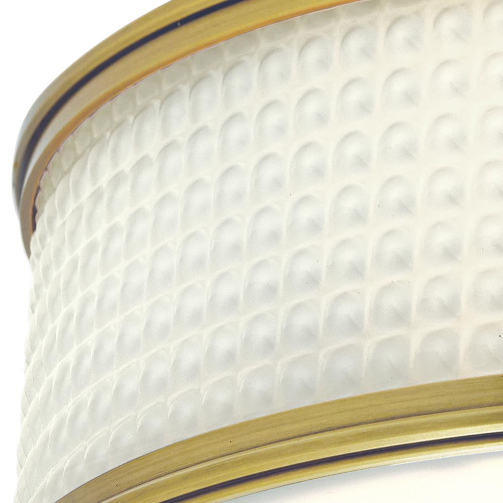The drum shape summons up mid-century appeal, then adds an unexpected three-dimensional texture to the opaque white diffuser for a statement piece that’s pure delight. Available in 16-inch flush mount or semi flush mount, with Polished Nickel or Satin Brass details.