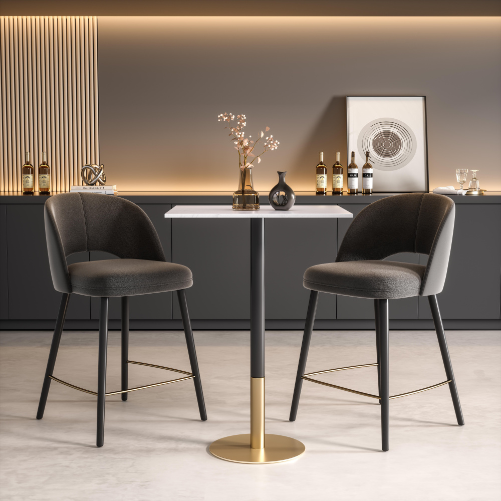 Bring a touch of luxury and functionality to your space with this chic pub table. The rectangular engineered marble tabletop, featuring subtle marbling, offers a sleek and refined surface that complements modern and minimalist décor. Supported by a durable iron base in a striking gold finish, this table combines visual appeal with lasting stability. Perfectly suited for compact spaces, it’s a great addition to home bars, breakfast nooks, or small dining areas. The combination of marble-inspired design and industrial flair creates a versatile piece that adapts seamlessly to a variety of settings. With assembly required, it’s a straightforward way to add style and practicality to your home.