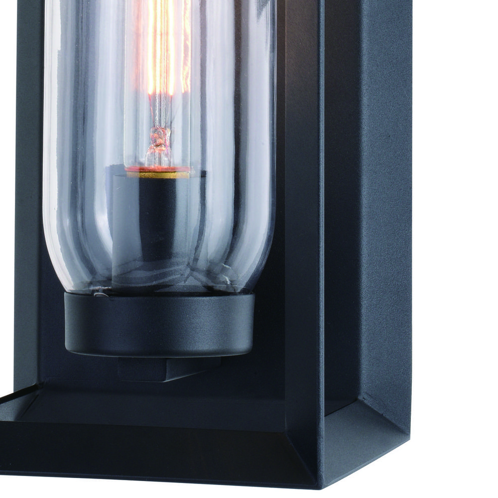 Long and lean best describes the Pullman collection. The unique chambered matte black frame strongly surrounds the generously sized light source. Pill shaped clear glass offers a clean open feel, setting the stage for this wall mount beauty to shine. Ideal for your porch, entryway, garage, or any other area of your home.