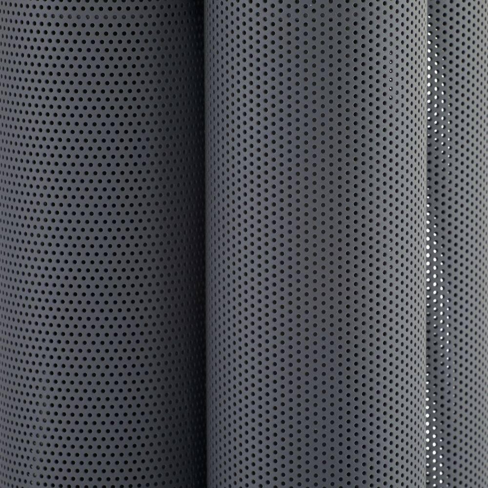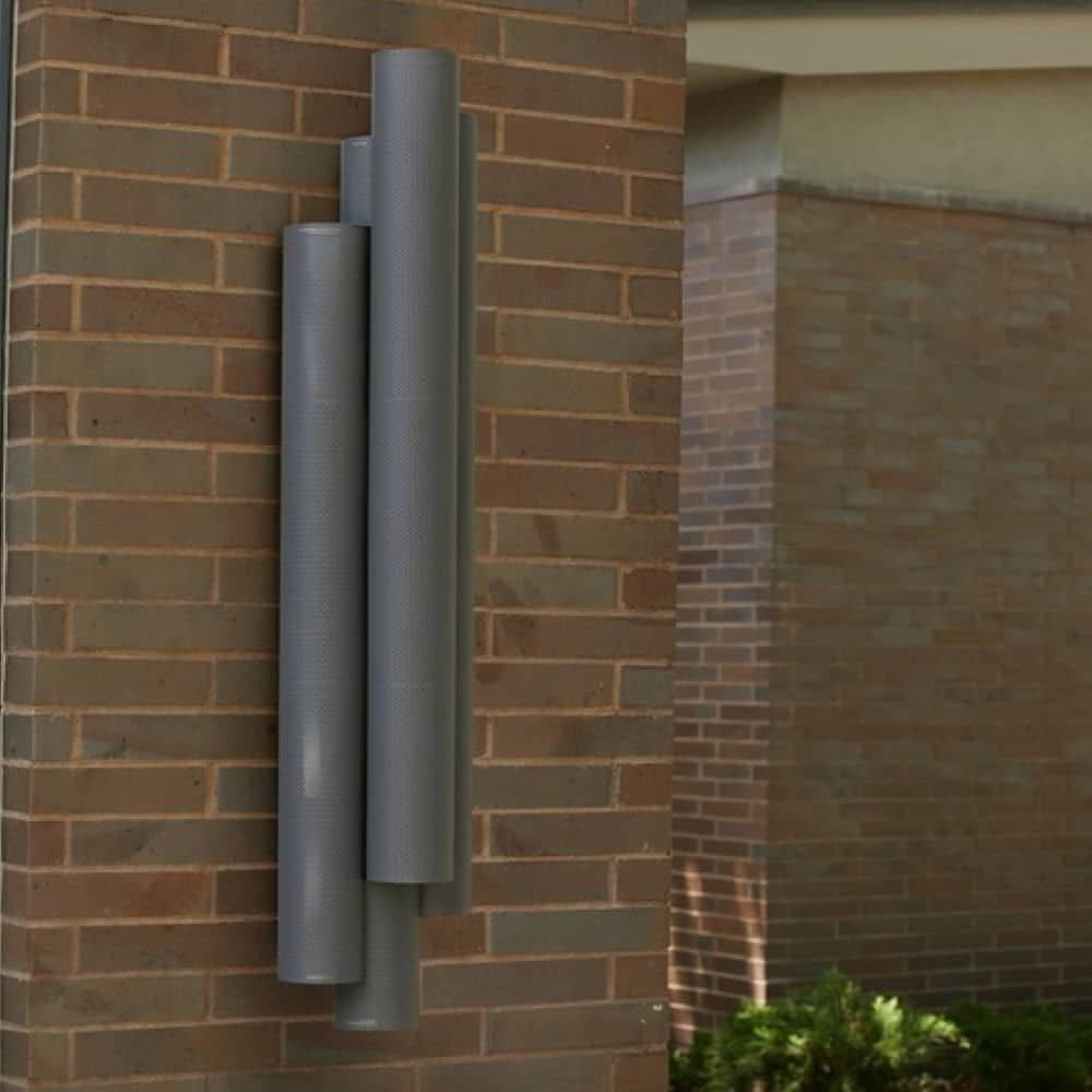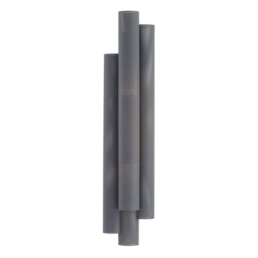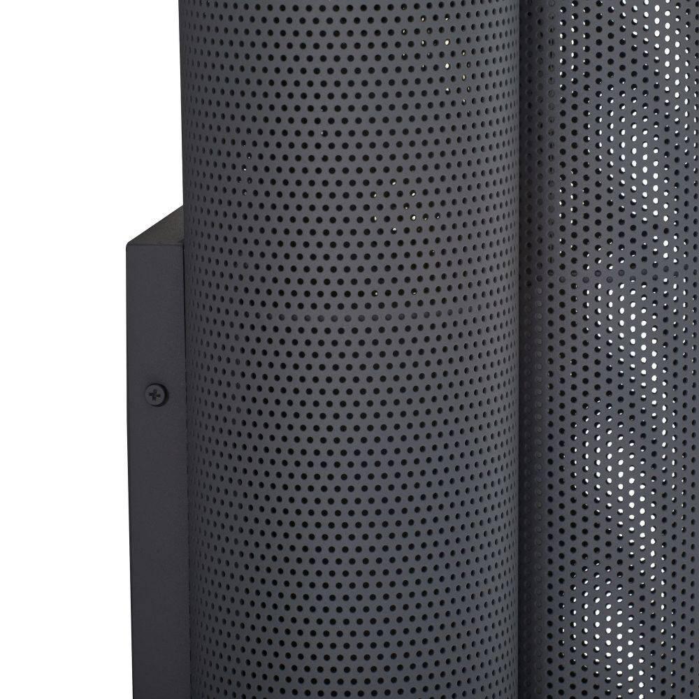 The Punch Oversized Outdoor Sconce features a trio of perforated marine grade aged graphite steel cylinders to illuminate and elevate exterior spaces. Each of the cylinders contains bi-directional lights, to cast an upward and downward glow. A protective coating helps withstand the elements.