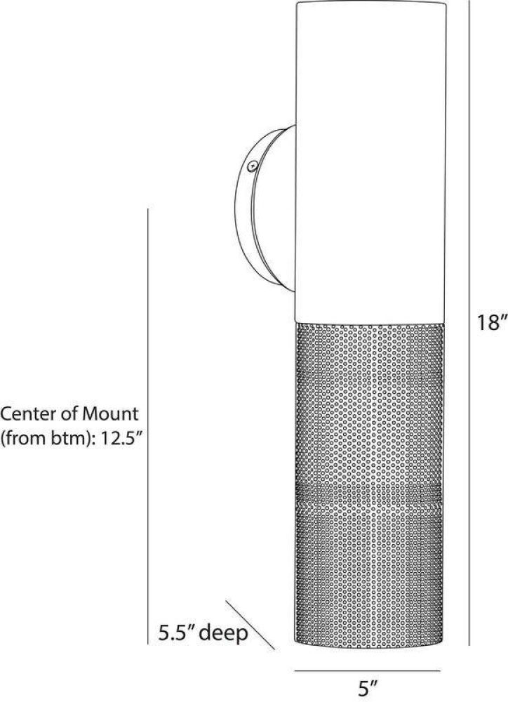 The Punch small outdoor sconce is a subtle, linear option for exterior spaces. A perfect pairing of solid and perforated marine grade matte black steel cylinders on a rounded mounting plate, Punch casts a diffuse downward glow. A protective coating helps withstand the elements.