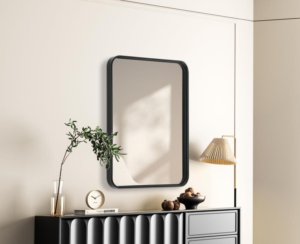 Elevate your home decor with this versatile wall mirror that combines functionality and modern design. Made from a sturdy combination of MDF, iron, and reflective mirror glass, this piece is built to last while adding a polished finish to any room. The extended depth of the frame not only provides a striking dimensional effect but also ensures the mirror’s presence commands attention as a focal point. Whether you're decorating a bedroom, bathroom, or entryway, its diverse shapes—including rectangle and square—offer plenty of options to suit your style. The hand-painted black, brass, or silver finish brings a subtle yet striking touch, complemented by rounded corners for a smooth and contemporary aesthetic. with four metal inset hangers, it's ready to hang vertically or horizontally, ensuring flexibility for any layout. Available in multiple sizes, this mirror is a statement piece that blends seamlessly into both modern and classic spaces.