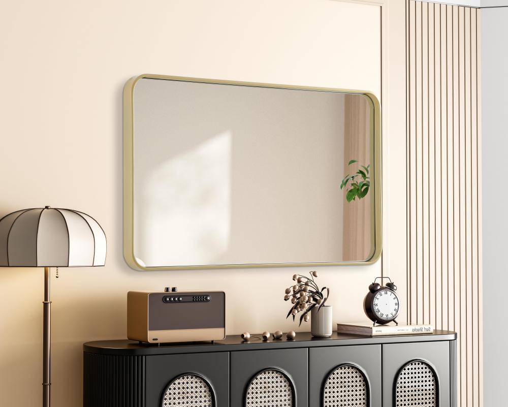 Elevate your home decor with this versatile wall mirror that combines functionality and modern design. Made from a sturdy combination of MDF, iron, and reflective mirror glass, this piece is built to last while adding a polished finish to any room. The extended depth of the frame not only provides a striking dimensional effect but also ensures the mirror’s presence commands attention as a focal point. Whether you're decorating a bedroom, bathroom, or entryway, its diverse shapes—including rectangle and square—offer plenty of options to suit your style. The hand-painted black, brass, or silver finish brings a subtle yet striking touch, complemented by rounded corners for a smooth and contemporary aesthetic. with four metal inset hangers, it's ready to hang vertically or horizontally, ensuring flexibility for any layout. Available in multiple sizes, this mirror is a statement piece that blends seamlessly into both modern and classic spaces.