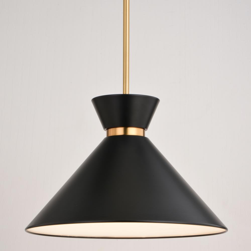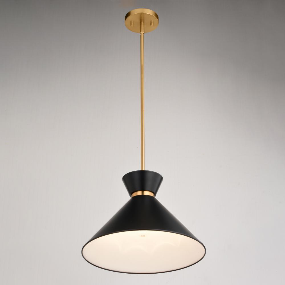 Matte black metal shade with white interior provides bright illumination and a mid-century modern feel