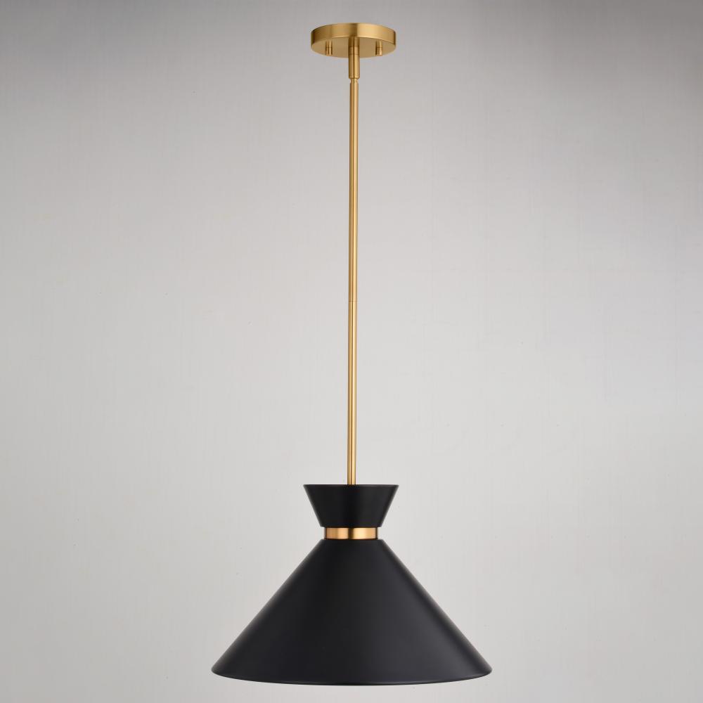 The Racine bowtie-shaped metal shade in matte black and natural brass captures the glamorous mid-century modern style. Height is adjustable with the included down rods; compatible with sloped ceilings. Sized right to be installed individually or in a pair; ideal for kitchens, dining areas, or bar areas.