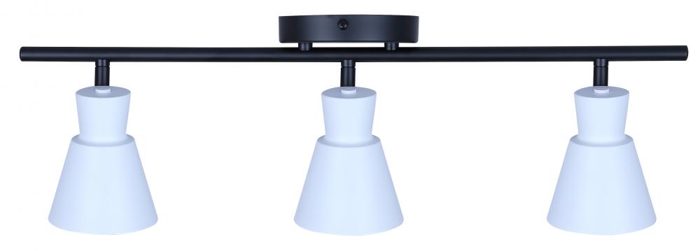 RADLEY 3 Light 22.5 in. Ceiling/Wall Matte Black Track Light Kit with Matte White Metal Shade