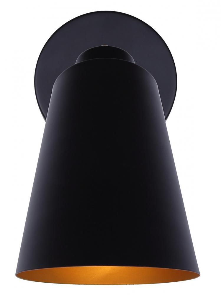 Rame 1 Light Vanity with Matte Black and Gold Finish and Matte Black with Gold Interior Shade