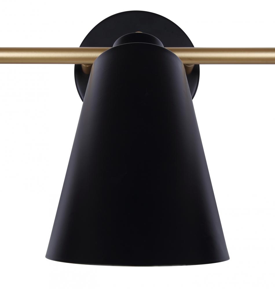 Rame 3 Light Vanity with Matte Black and Gold Finish and Matte Black with Gold Shade