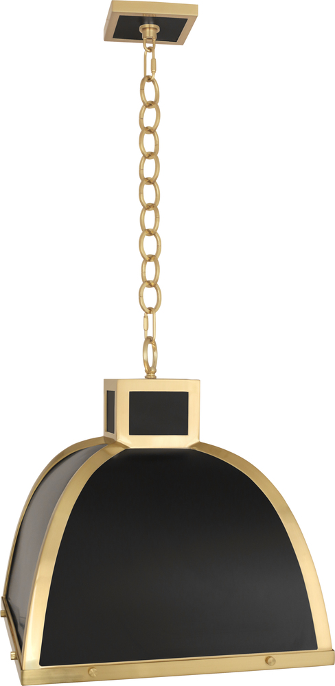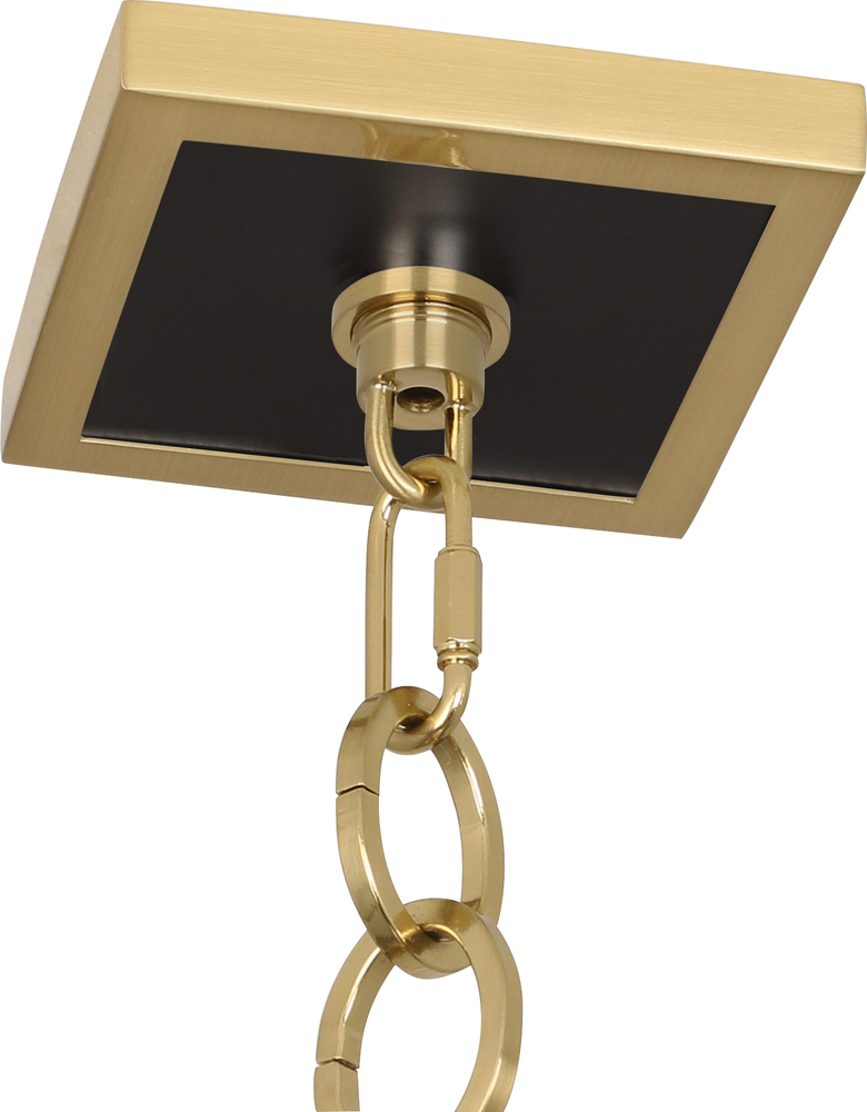 The Ranger collection is high contrast and contemporary, combining sleek metal framework and chic surfaces. - Matte Black Painted Finish with Modern Brass Accents Ranger Pendant with Square Printed White Glass Diffuser