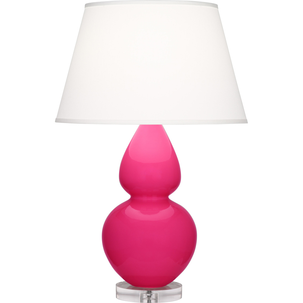 Razzle Rose Glazed Ceramic with Lucite Base Double Gourd Table Lamp with Pearl Dupioni Fabric Shade - Our Double Gourd collection features a simple but gracefully curving silhouette. Available in a wide array of vibrant colors and several different base finishes.