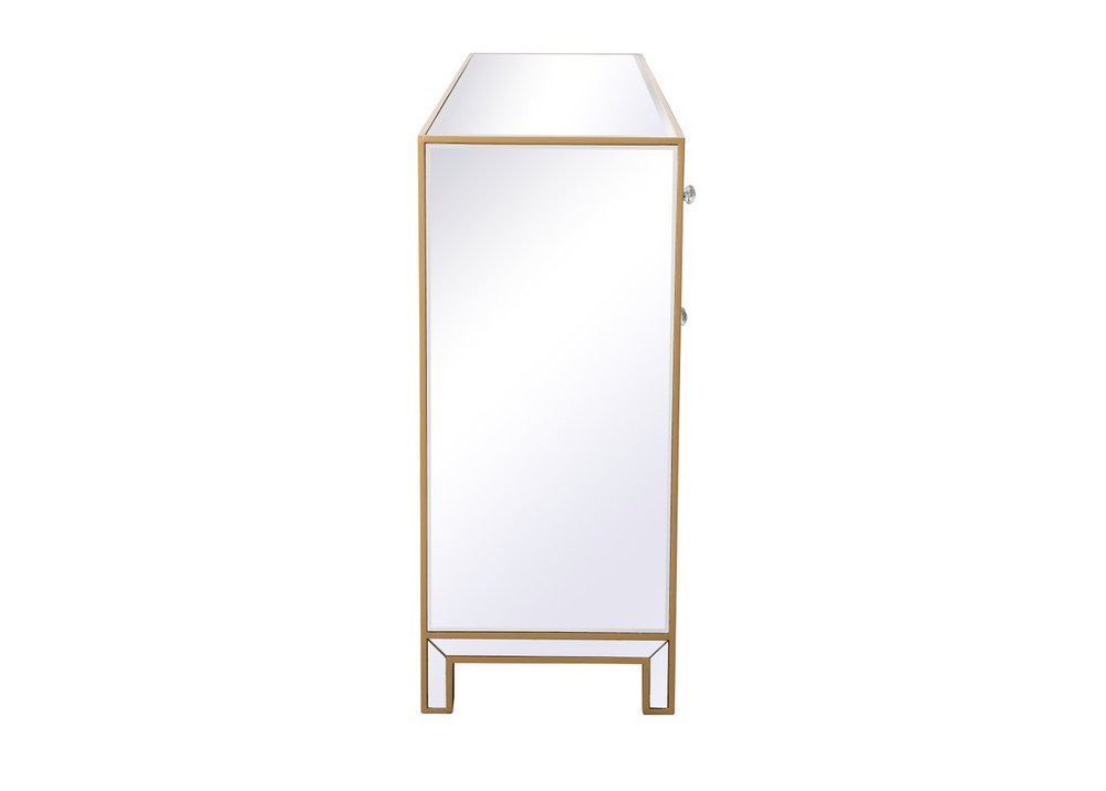 Crafted with mdf, clear mirror panels, and crystal knobs
