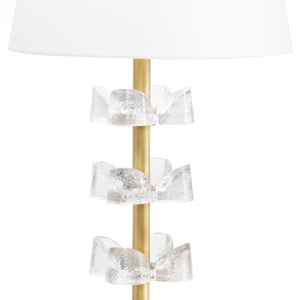 Feminine and fun, the Bella Table Lamp showcases tiers of hand-crafted cast glass flowers gracefully suspended along a natural brass finished base. The sleek and simple design of its body paired with the delicate accents creates a beautiful combination of strength and grace. Style a pair on a bedside table for ultimate flower power.