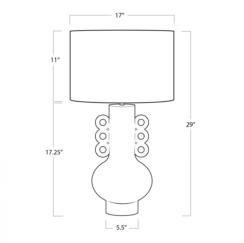 The primitive, vase-like, cast metal base of the Chandra Table Lamp is dappled with a paper mache-inspired finish. A lovely matte grey color, with natural brass neck and finial, the Chandra harkens to traditional craftsmanship, where the hand element is accentuated for its natural beauty. The Chandra vessel lamp is finished with a large drum shade in natural linen. Place the Chandra in a Boho-Chic bedroom or eclectic living space.