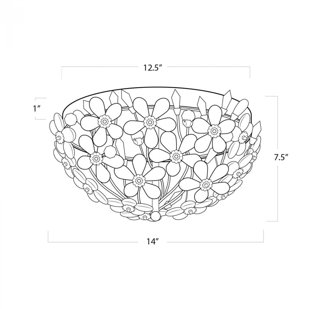 Delicately crafted crystal flowers suspended by a gold-leafed frame, give this flush mount a strikingly romantic feel. The hand-polished flowers refract light into brilliant sparks, making this fixture a truly dazzling statement piece.