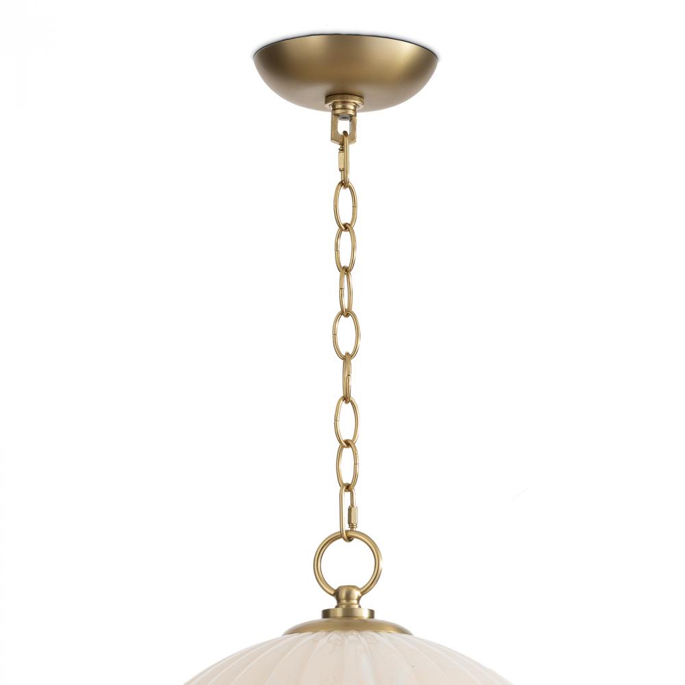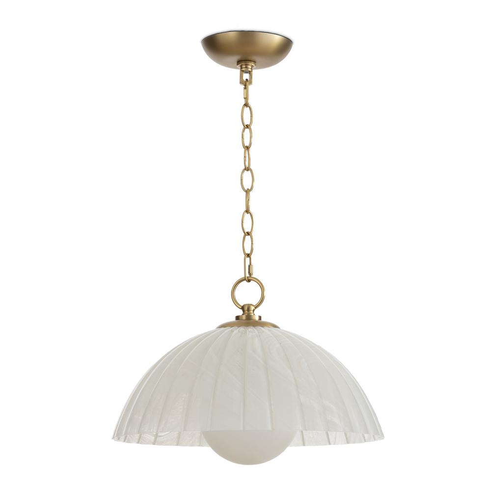 A timeless masterpiece that blends classic elegance with modern sophistication, the Dariel Glass Pendant is a versatile glass dome fixture featuring luxurious natural brass chain and accents. The glass shade has a mesmerizing swirled pattern, adding a touch of intrigue and casting an inviting glow wherever it illuminates.