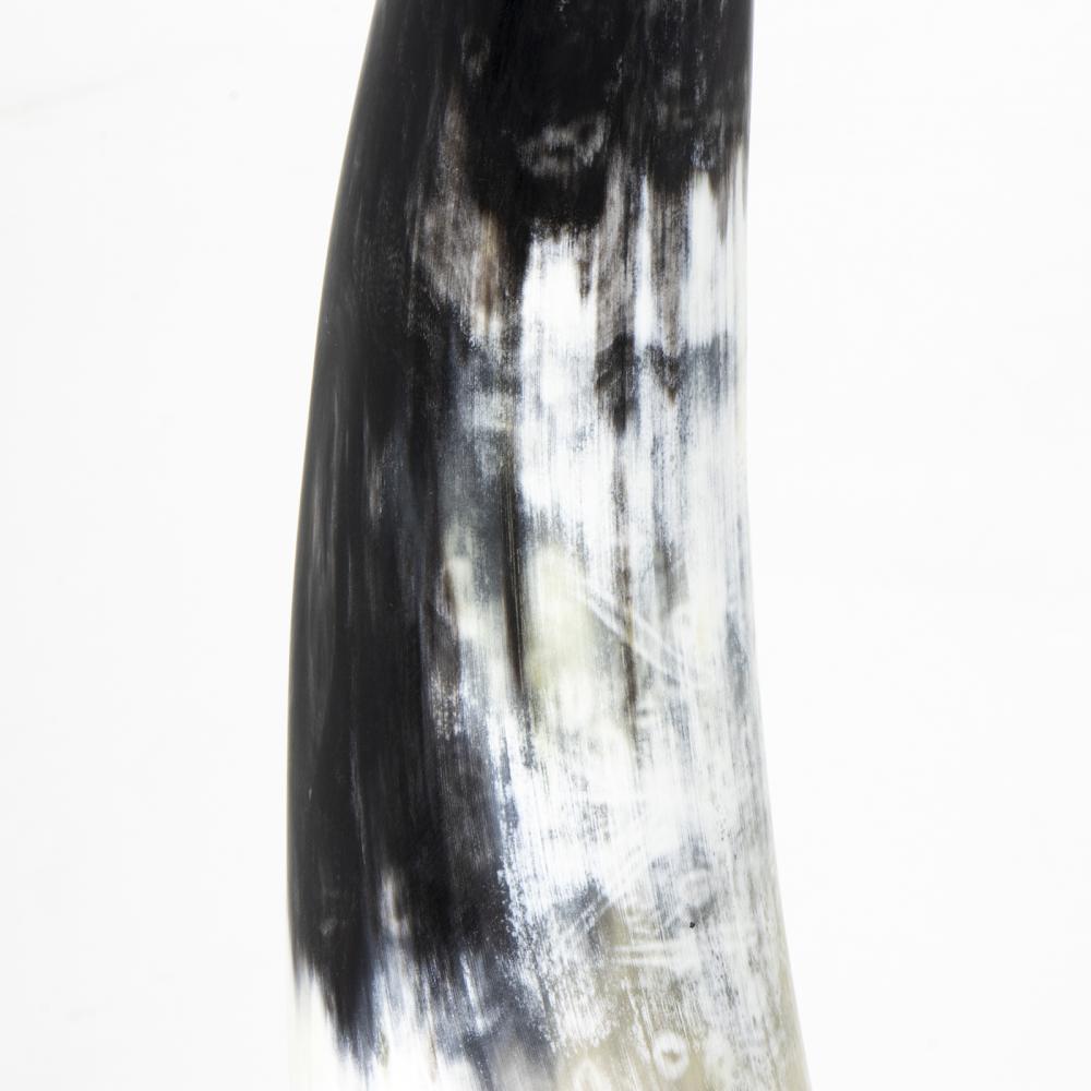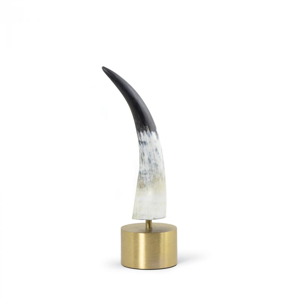 This luxurious sculpture is a bold pairing of two natural elements that make for a wildly chic accent piece. The natural horn has a matte finish and is distinctive when paired with its brass base, transforming it into a sculptural art piece.