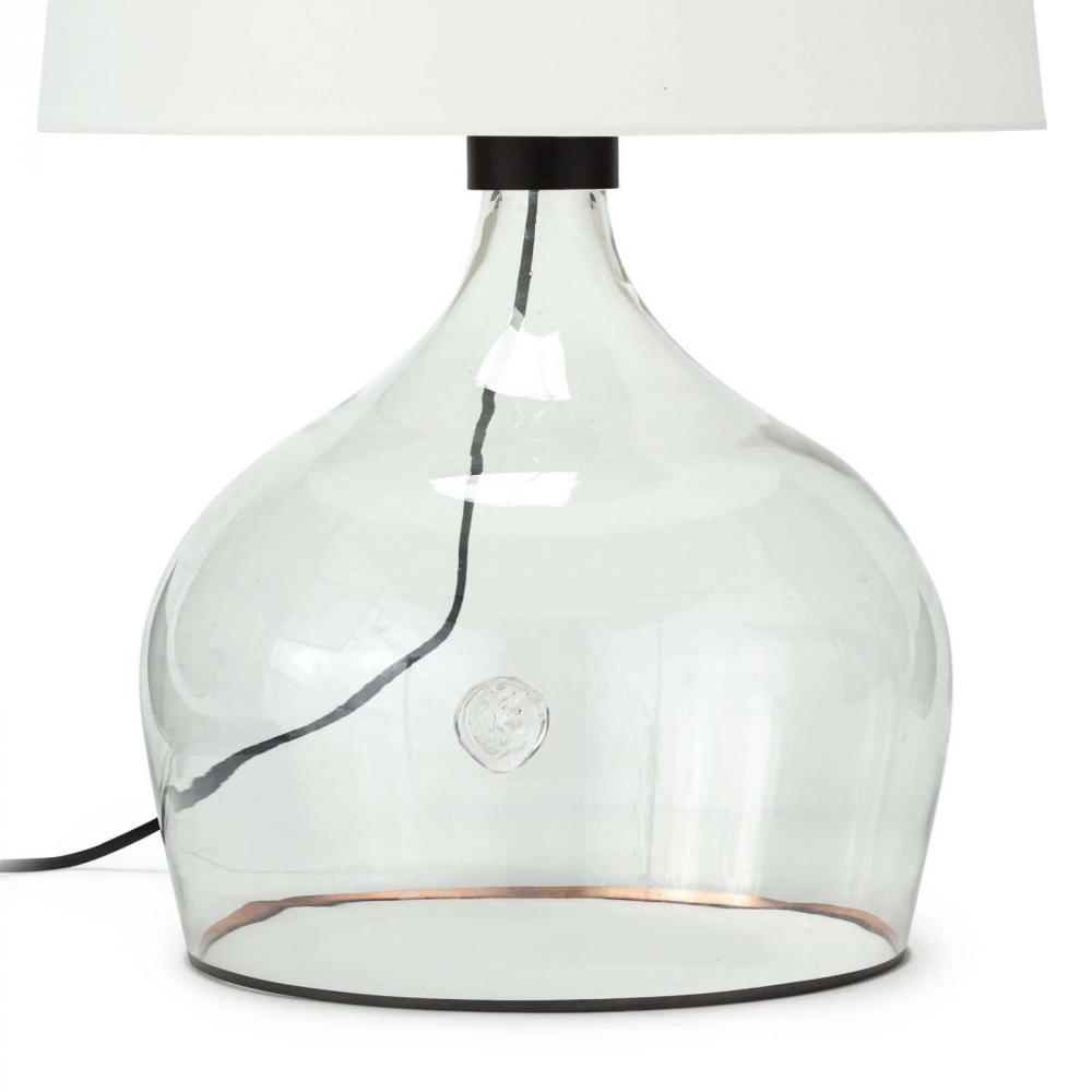 Add refreshing character to your living room, dining room, or bedroom with this beautifully constructed glass vessel lamp. Thoughtful detailing such as its black cloth cord, copper stripe inside the base, and glass medallion make this lamp the perfect balance of casual and sophisticated.