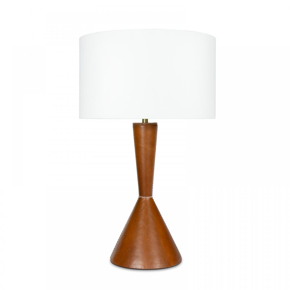 Add a touch of rustic elegance with the Denver Table Lamp, a striking blend of style and craftsmanship. Wrapped in rich leather with intricate cross-stitched detailing, this lamp combines mid-century charm with a rugged edge. Its silhouette starts slim at