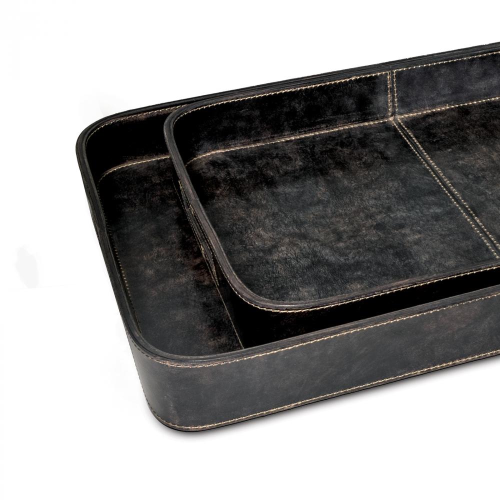 Crafted of genuine leather with a modern feel, this set of trays has been designed to be stylish and functional. The rectangle shape and built-in handles make this piece ideal for accessorizing your living room or bedroom, while the natural leather provides an elevated look and feel.