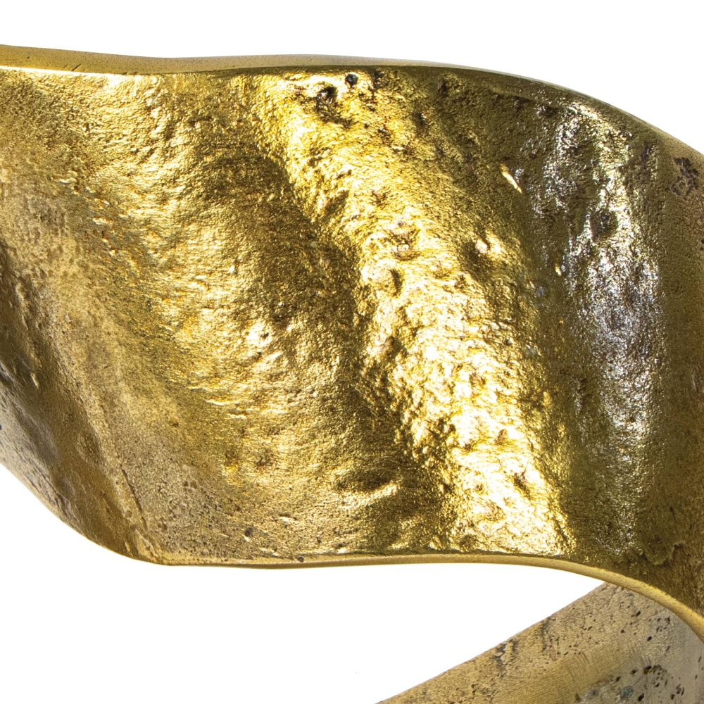 An infinity knot crafted out of aluminum, cast to capture a raw, textured surface, this object is an industrial work of art. Place on a bookshelf in a living room for a sculptural statement.