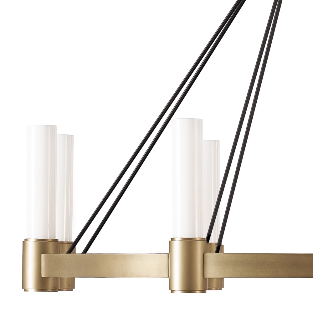 With quiet strength, the Dixon Chandelier confidently holds an octet of opal white glass pillars aloft in its arms. Each cylinder is open at both ends to shine light above and below. Simple and stunning in a dining room but an equally bold choice in your kitchen.