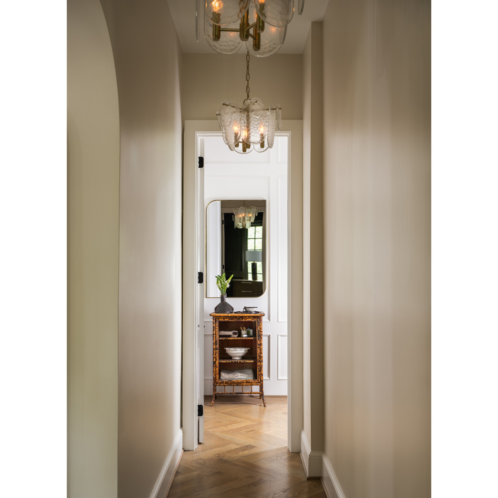 Modern and elegant, panes of striking water glass adorn the Echo Pendant to create a dynamic lighting piece. Each glass pane diffuses light, providing a soft glow to the area around it, perfect as glamorous statement in an entry, dining or high above a center kitchen island.