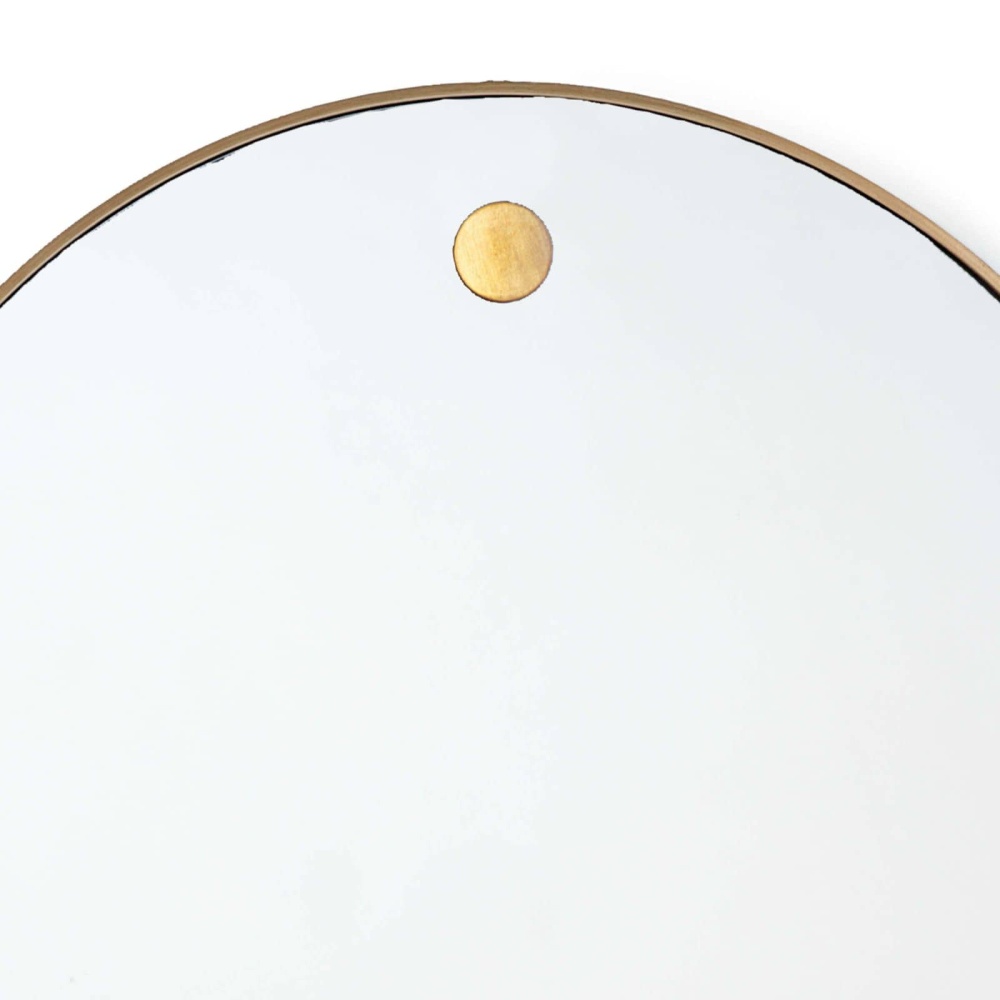 Simple, enduring, and timelessly classic, this elegant, modern mirror is sure to turn heads. A slender, natural brass band frames the stately, round mirror, upping its extravagant factor without stealing focus.