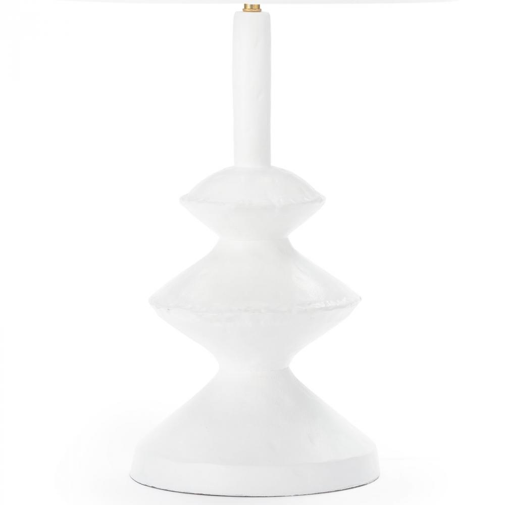 Inspired by a paper mache sculpture, this versatile lamp is at home in a variety of spaces. Complex curves, paired with a matte white finish give this table lamp a unique appearance. Slight imperfections were left in, adding beauty and originality.