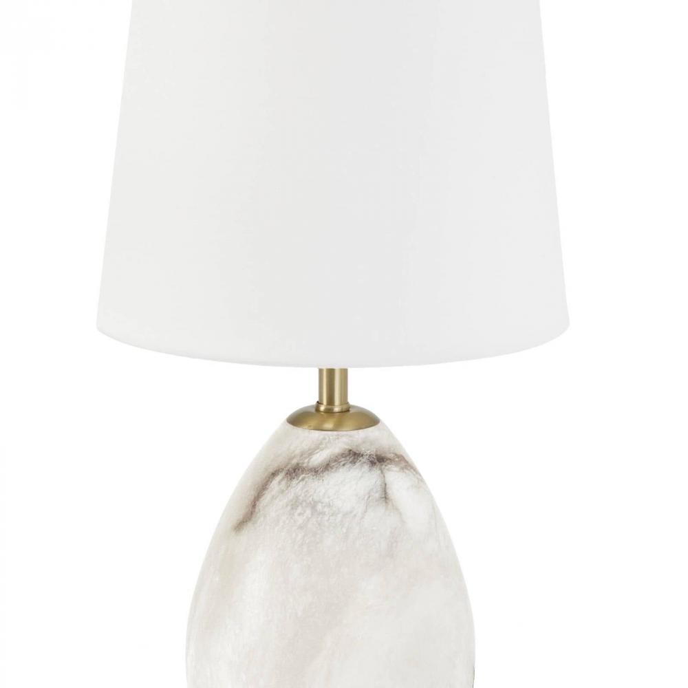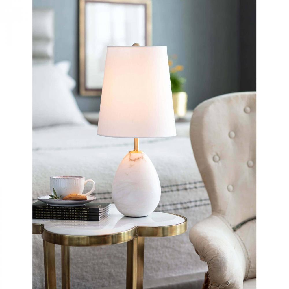 Jared Mini Lamp transcends trends with its classic yet modern style. An oval alabaster base is beautifully veined for a sophisticated, organic look, and its elongated shade adds depth to its silhouette. Place on a buffet or a sideboard for extra illumination.
