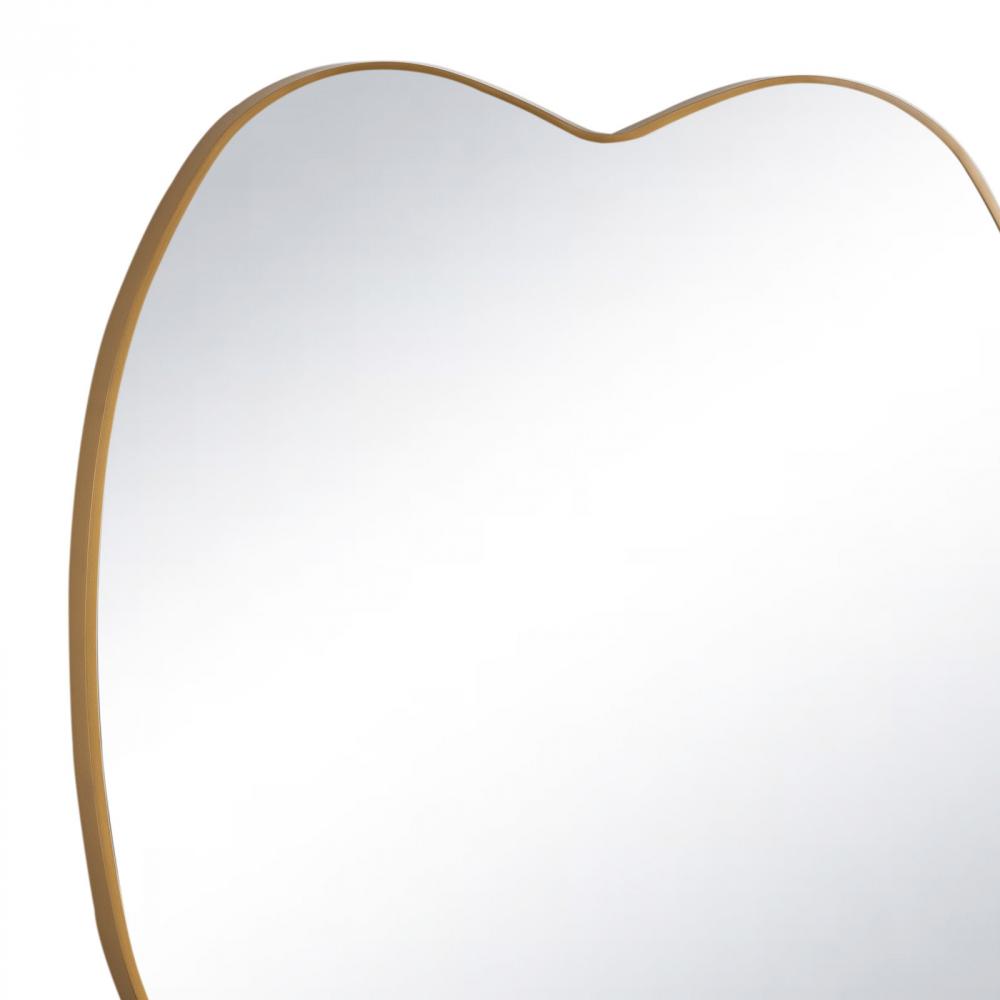 The Mela Metal Mirror: a captivating blend of organic shapes and sleek metal craftsmanship. Its artful design boasts a unique silhouette that adds a touch of contemporary flair to any space. Perfect for living rooms, bedrooms, or entryways, this mirror promises to be a striking focal point, elevating your home decor with its distinct charm.