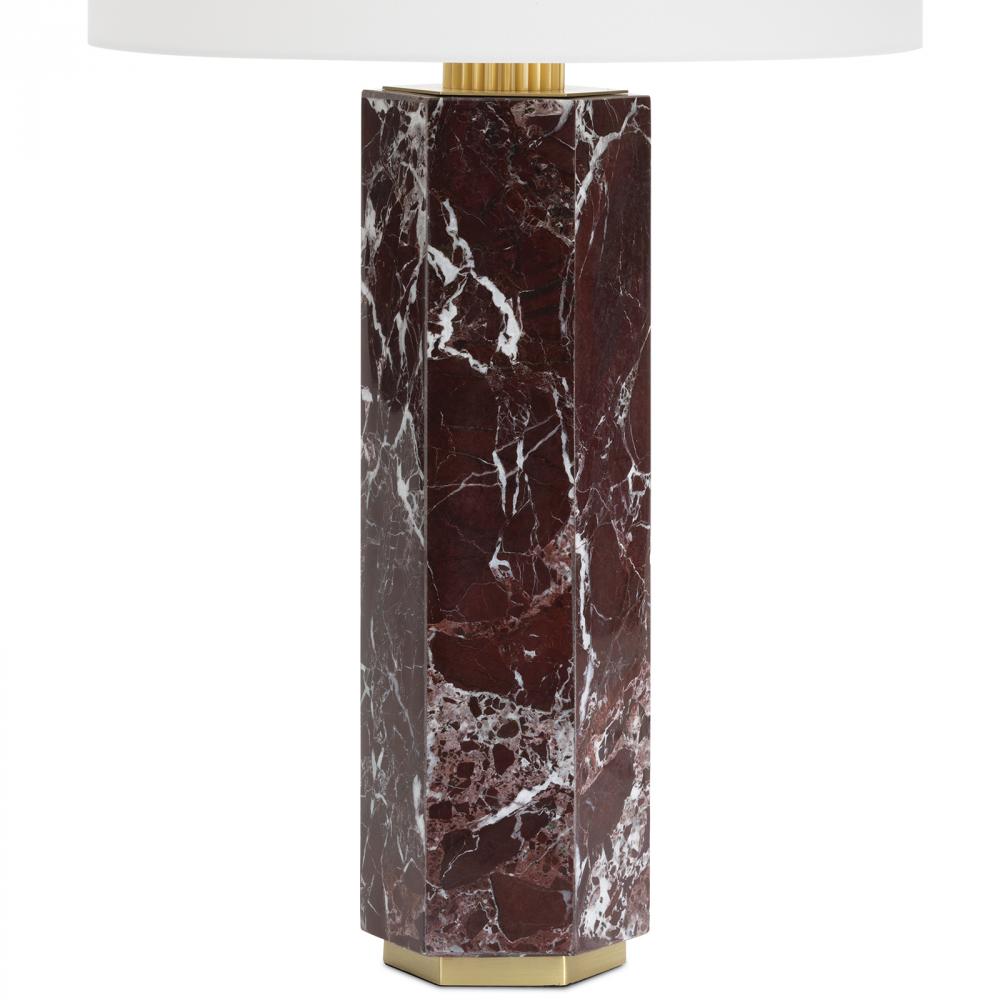 Crafted from exquisite marble in a rich aubergine hue, the Nico Marble Table Lamp epitomizes sophistication. Embracing contemporary trends, it features geometrically shaped exotic marble topped with a Natural Linen shade and casts a warm, inviting glow.