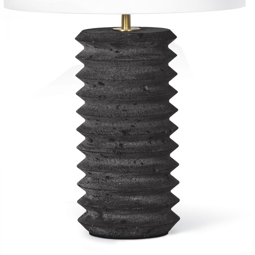 With its striking accordion-like silhouette and deep grooves, the Noir Column Lamp will make a bold statement in any room. The black travertine stone body is paired with a natural linen shade. Place one on an end table in your living room or style a pair on your entry table for a touch of casual sophistication.
