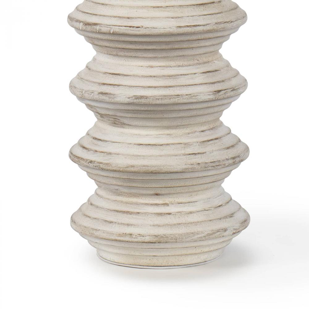 Like sun-aged driftwood, the Nova Lamp's white-washed wooden body is the perfect piece of coastal-inspired lighting. Place the Nova in a relaxed living room, bedroom, or entryway for a bit of sculptural impact. Light distressing accentuates Nova's signature carved ridge detailing and a classic, natural linen drum shade with natural brass ball finial completes the look.