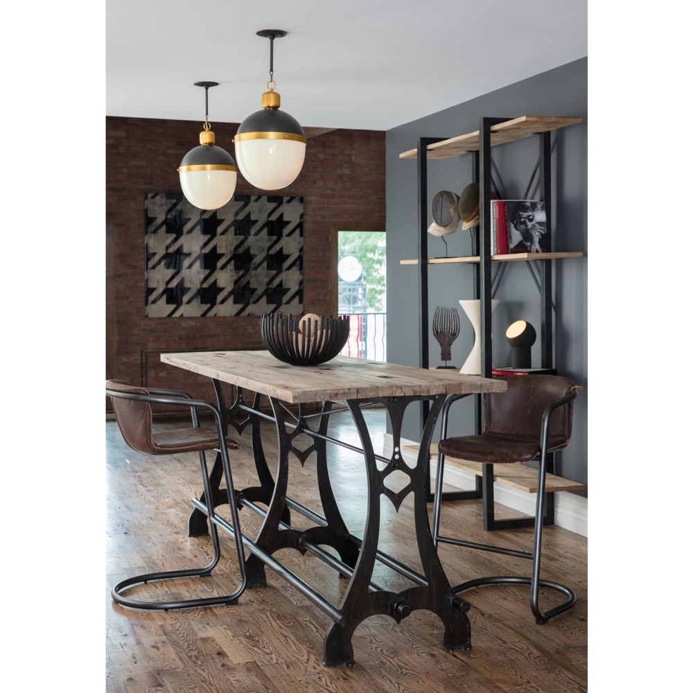 Commanding tradition and style, our Otis Pendant features a bold collaboration of metal and translucent white milk glass—suspended by an extendable pipe and chain for versatile integration into any aesthetic.