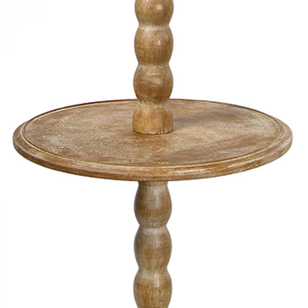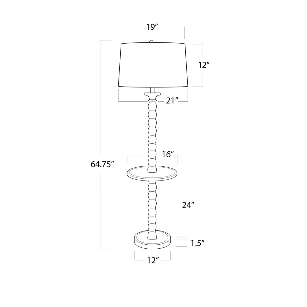 Hand-lathed from solid wood and finished for a rustic effect, the slender body of the Perennial Floor Lamp is refined and elegant. The Perennial offers more than just light with its functional tabletop surface perfect for setting a drink or small accessory. Place this stately floor lamp in a living room, reading nook, or bedroom for the perfect balance of rustic charm and function.