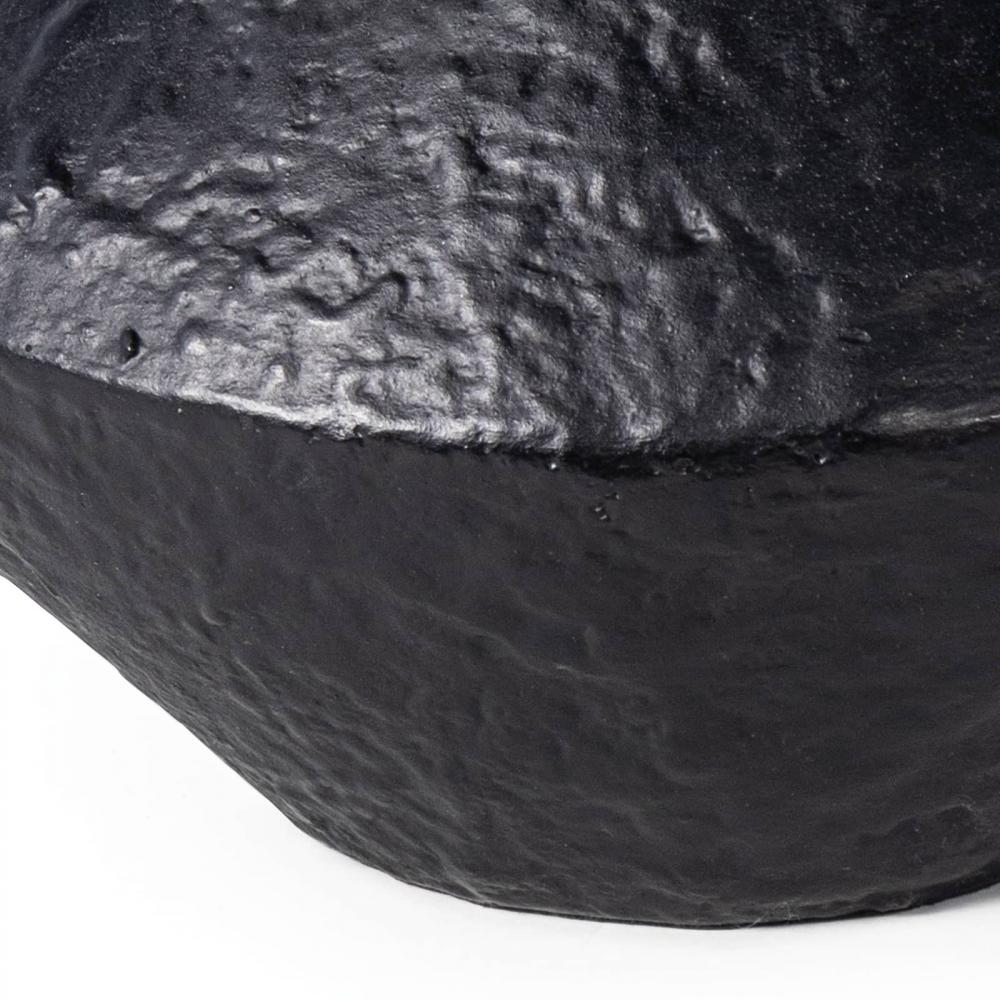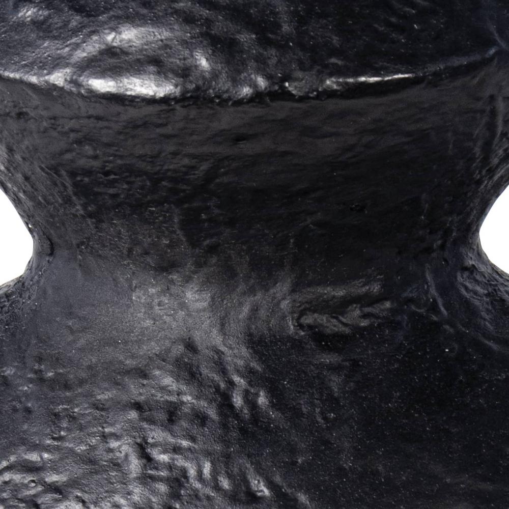 The blackened plaster finish of our Poe Vase is mottled with a texture that is crafted to have an artisan, handmade feel. Place this sculptural, artistic vase as a contemporary centerpiece on a table, etagere, or shelving unit.