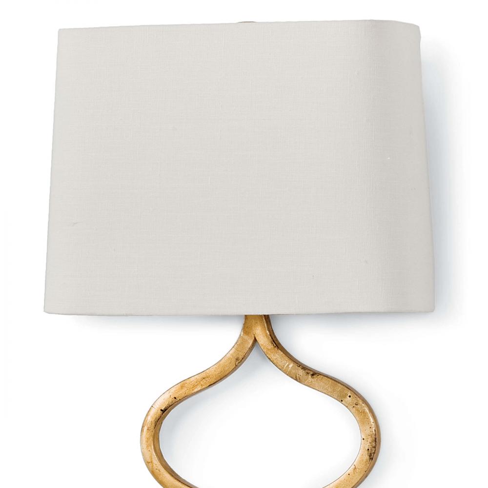 With a rich finish, the elegant twisting pattern of the Sinuous metal sconce creates a stylish statement. A contemporary natural linen shade completes the classic look.