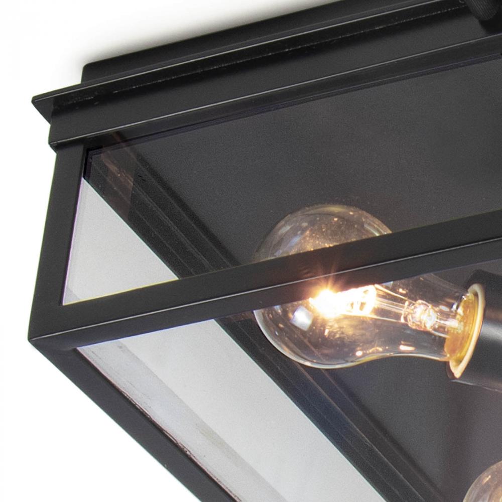 A black, powder-coated frame with classic, clean lines houses a cluster of sockets to add sophisticated illumination to your indoor or outdoor space. Note that this fixture is damp-rated but not fully outdoor safe, therefore it's best to place it in a covered area such as a covered porch, entryway, or indoors in a bathroom.