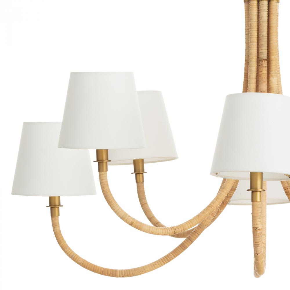 Introducing the Treble Chandelier, a timeless addition to your coastal-inspired decor. Embodying a classic bent arm silhouette with a charming bamboo-wrapped design, this chandelier brings coastal allure and natural elegance to any space. The Treble Chandelier seamlessly blends traditional style with organic textures, making it a captivating focal point in any room.