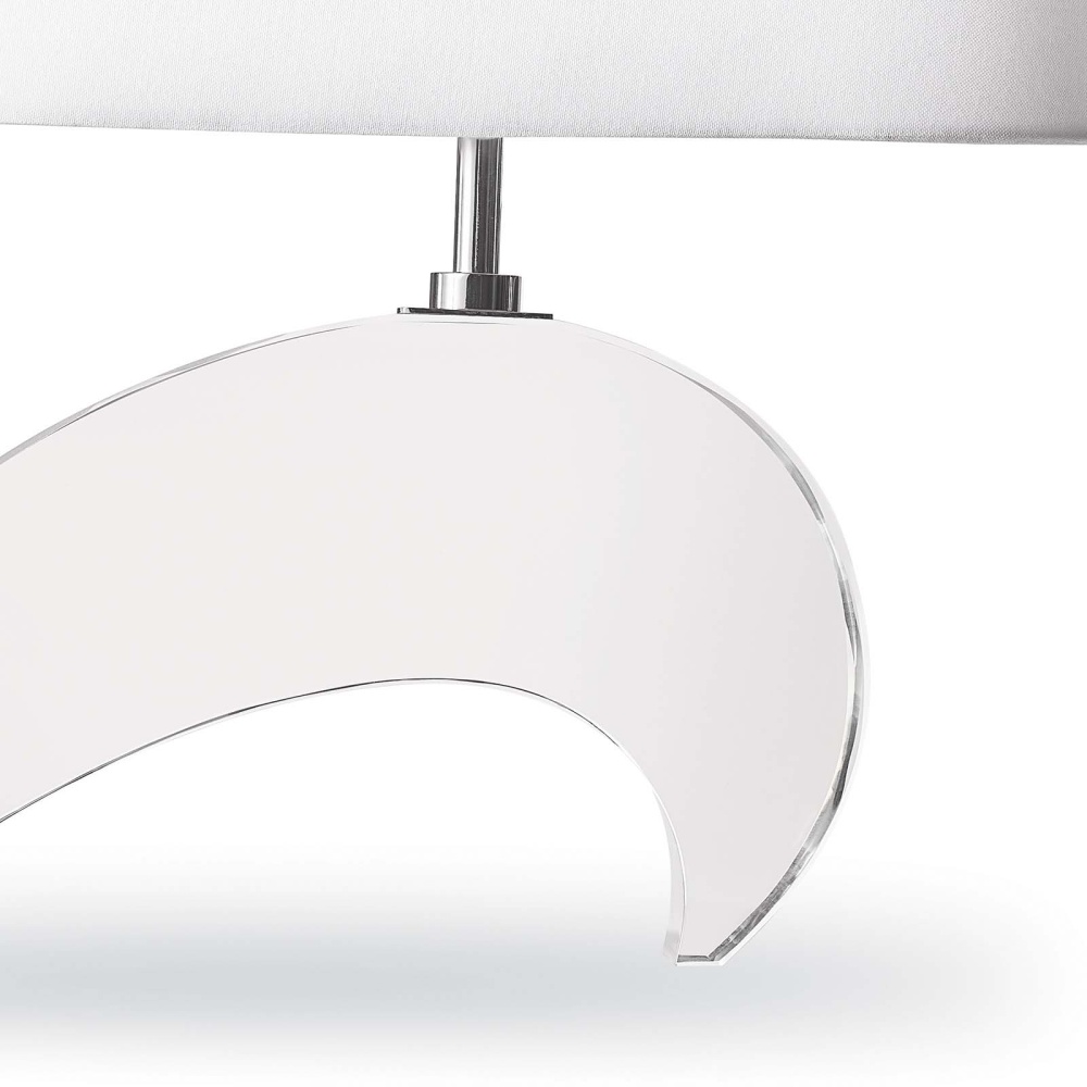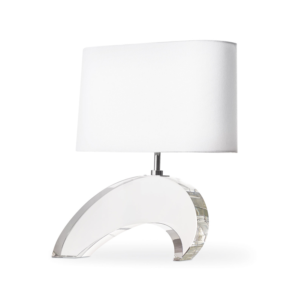 Inspired by a vintage sculpture, our Wave Crystal Table Lamp carries an elevated coastal-modern vibe into your space. The rectangular natural linen shade floats above a clear crest designed to reflect light off the surface. Evocative of a sparkling sea, cool polished nickel accents complete this eye-catching piece.