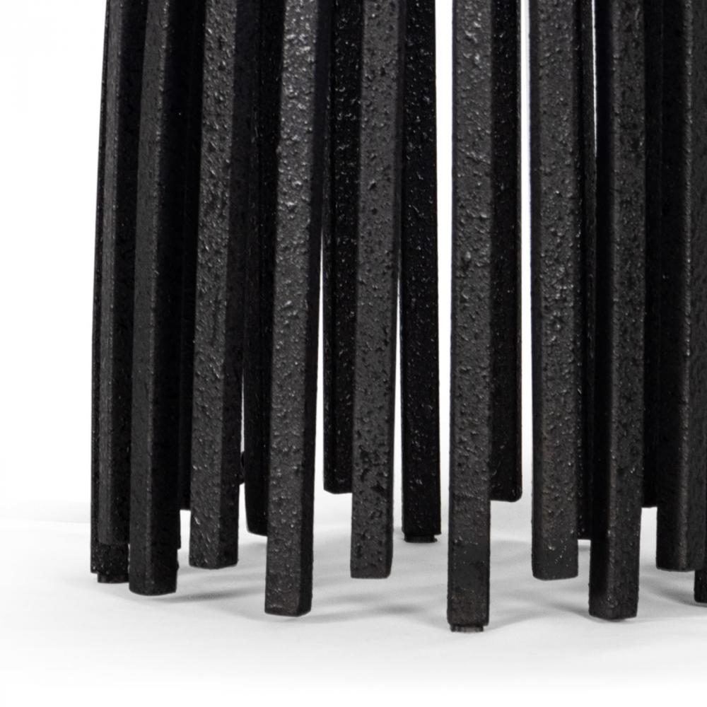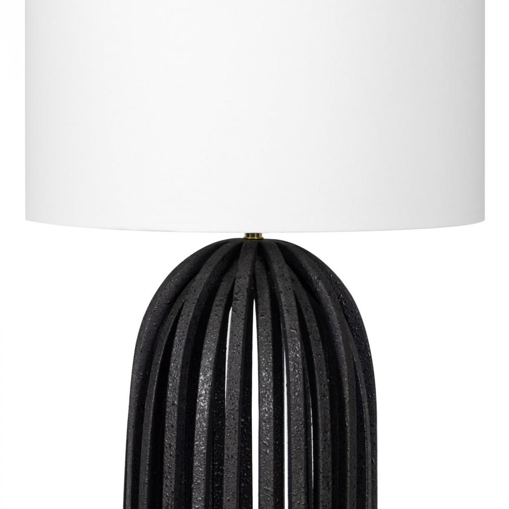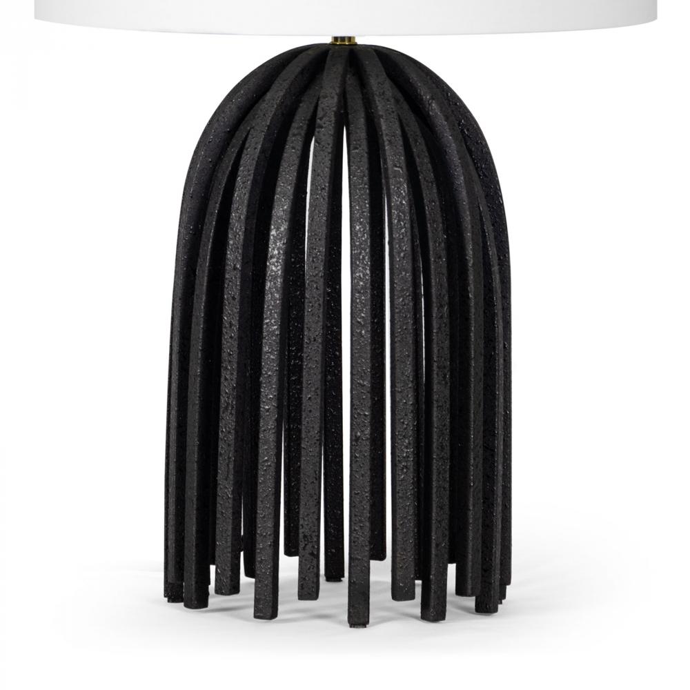 The Webbed Table Lamp is made of sculpted metal with a blackened iron finish, perfectly merging artistic form and function. Paired with a crisp, linen shade and natural brass fittings, the Webbed Table Lamp would sit beautifully in a modern living room, bedside or on an entry console.